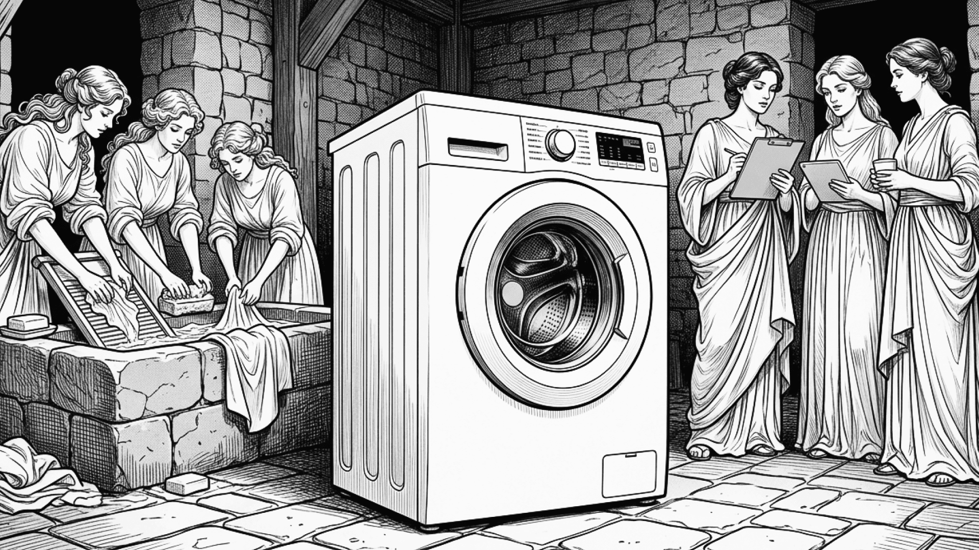 Because the machine that carries this much weight of hope, that has this much documented potential to free up hours, to reduce the physical toll of household labor that falls almost entirely on women, to signal that a family has crossed some economic threshold. Unfortunately, it's the same machine we've buried under mode buttons, AI wash cycles, steam programs, quick wash overrides, tub clean settings, and a cycle selector that goes twelve positions deep. I have pressed the AI wash cycle button at a friend's place a few years ago and the clothes came out the same - clean.